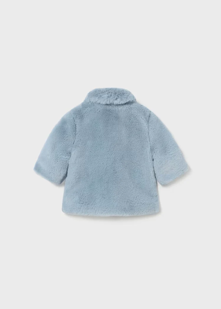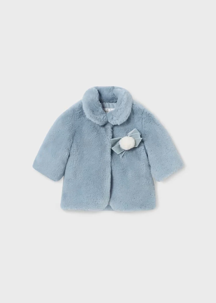 Abrigo de manga larga para recién nacido. Cuello bebé. Cierre con botones a presión ocultos que permitirán vestir la prenda con facilidad. Suave y gustoso tejido exterior de pelo. Forro interior enguatado de gran ligereza para un mejor aislamiento térmico. Elementos de adorno: lazo, pompón.