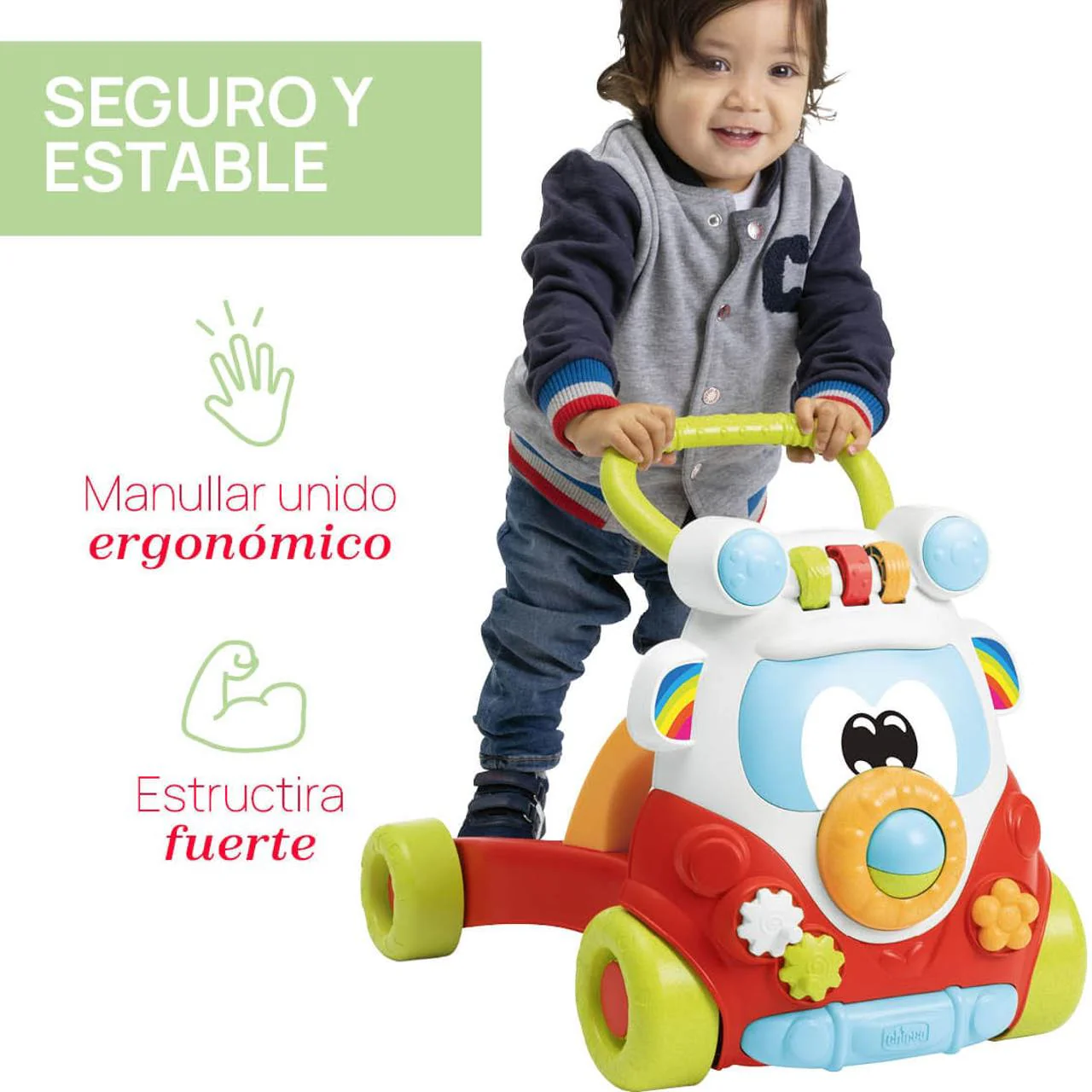 - DISEÑO MODERNO: El andador Happy Hippie de Chicco posee un diseño llamativo, lleno de colores vivos y diseño infantil que encantará a los más pequeños.