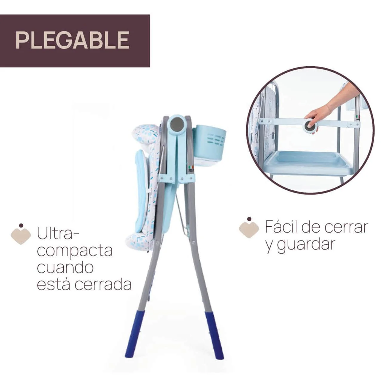 - Bandeja portaobjetos extraíble para guardar las cositas de tu bebé.