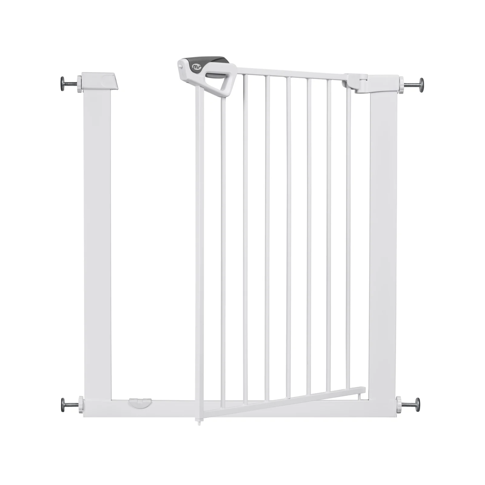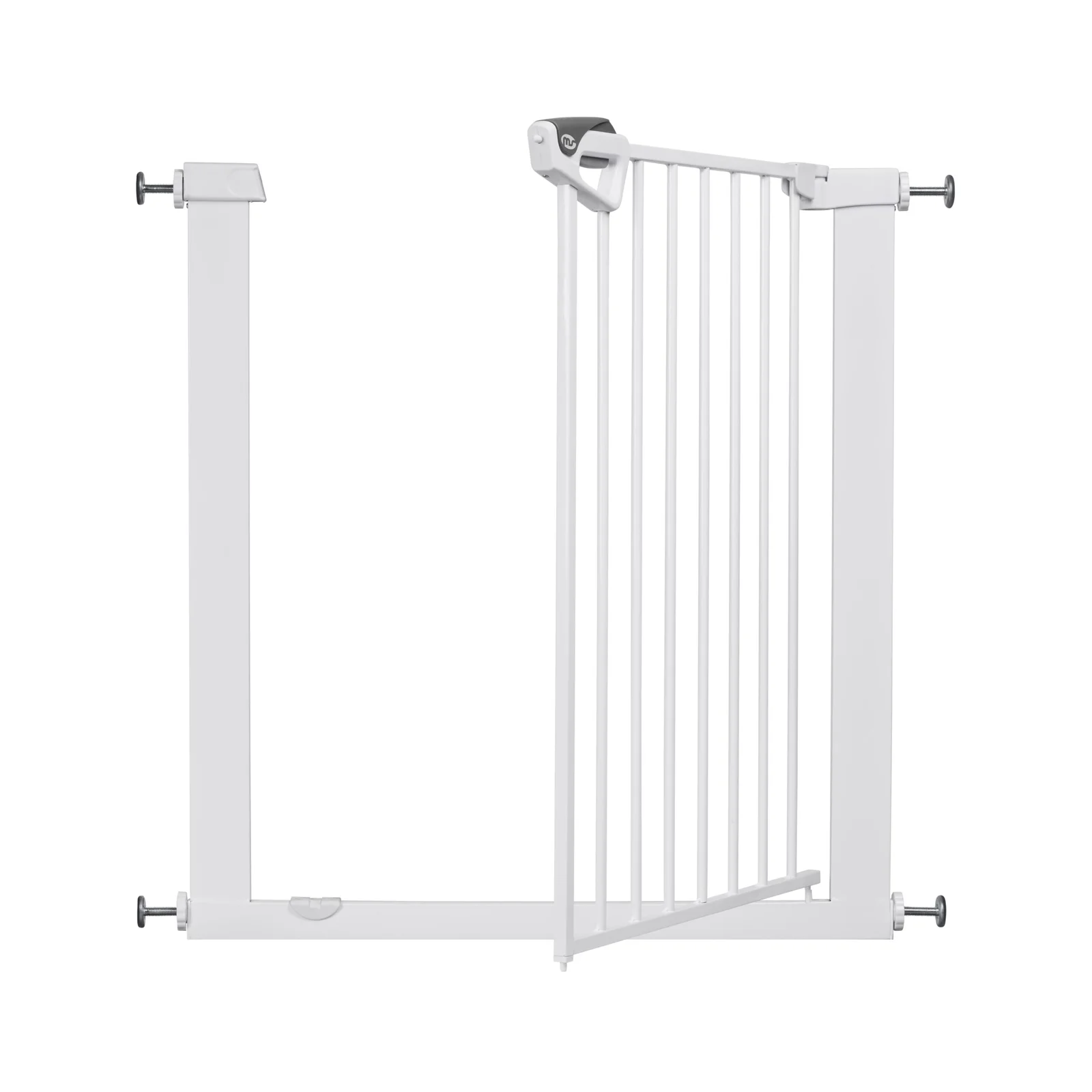 - Tiene bloqueo con pasador de seguridad en la parte inferior de la puerta para protección en ambas direcciones, lo que dificulta que la abran los bebés. Con esta barandilla de puerta puedes proteger de forma segura a los niños y aislar a las mascotas de cualquier peligro.