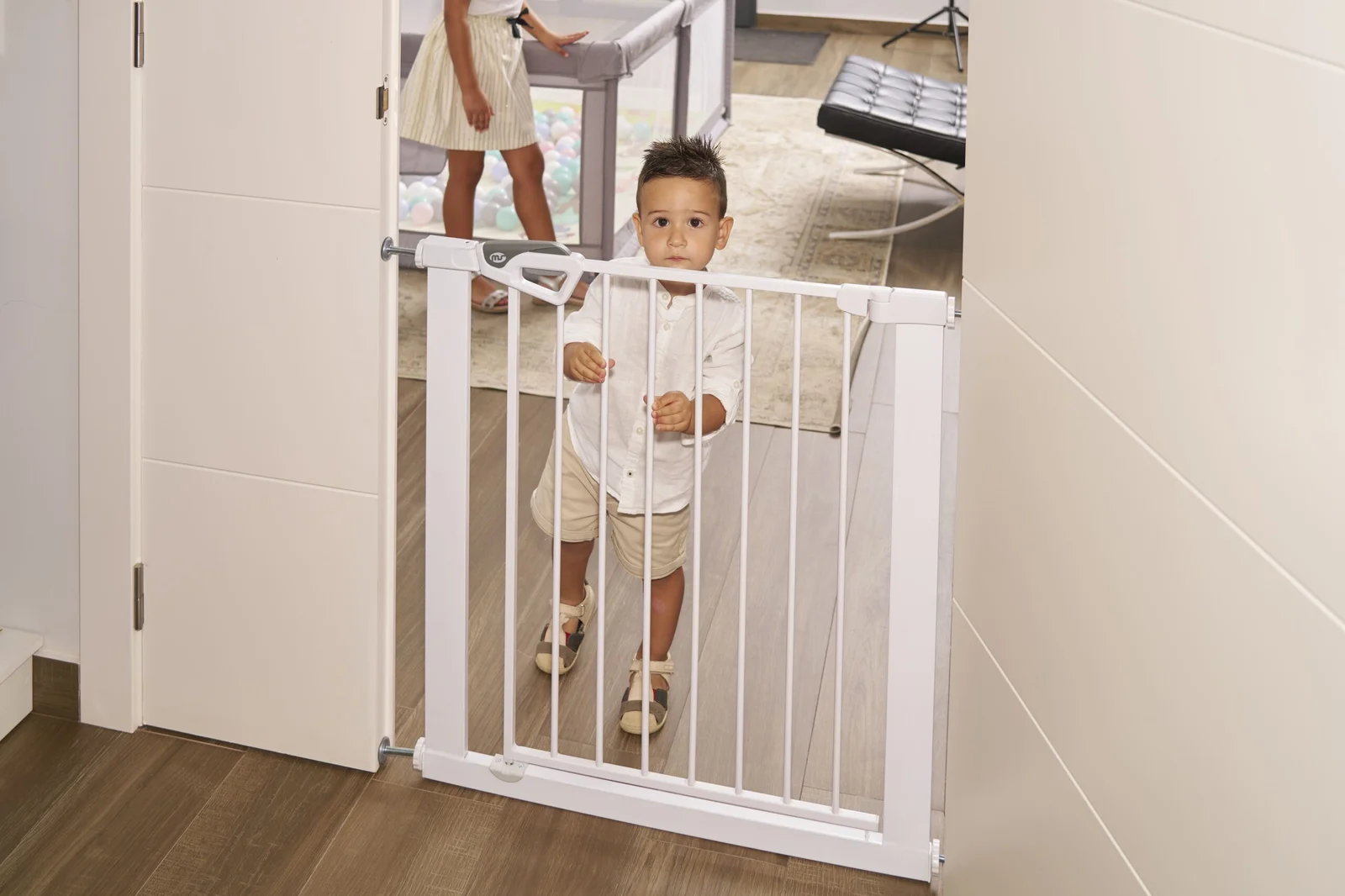 - Con nuestra barrera para escaleras o puertas podrás hacer que tu peque esté seguro sin necesidad de taladrar.