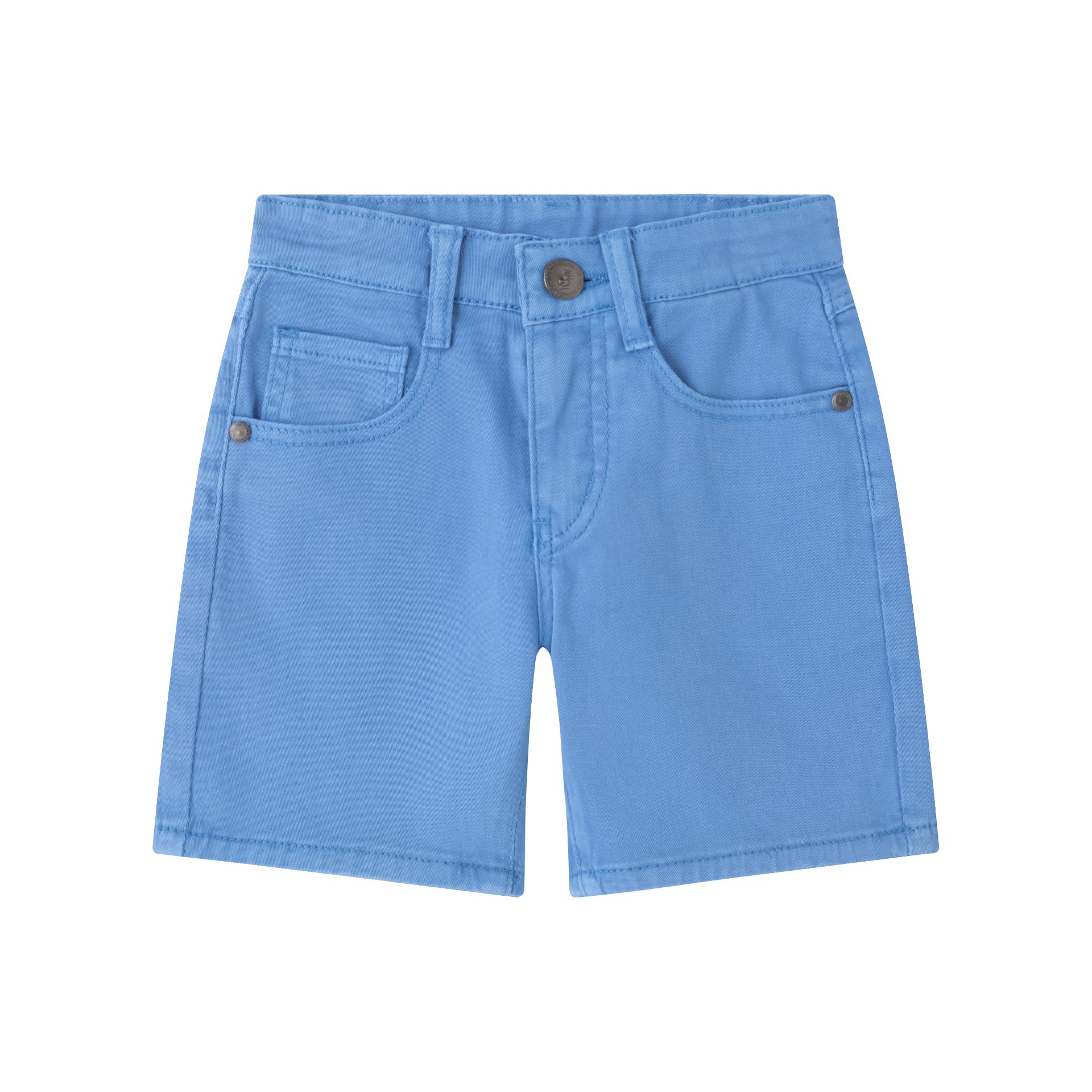 Una bermuda vaquera con mucho estilo y frescura para los días más activos del verano. Con diseño de cinco bolsillos y un alegre tono turquesa, esta prenda combina el look clásico del denim con un toque moderno y divertido. Perfecta para jugar, salir o ir al cole con comodidad, su tejido es resistente pero suave al tacto. Ideal para combinar con camisetas o polos, se convierte en un imprescindible del armario infantil.