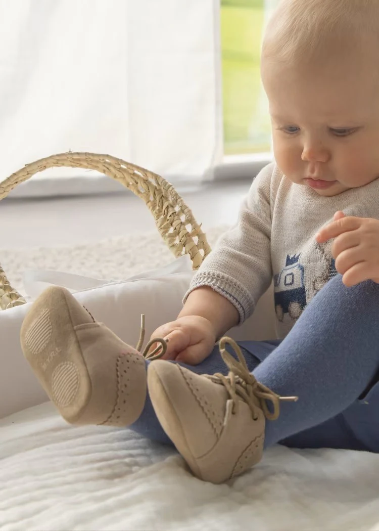 Un zapato práctico y abrigado para los días más fríos. Forro interior y plantilla de algodón transpirable. Suela ligera y antideslizante. Cierre con cordones que permiten un mejor ajuste y mayor sujeción del pie. Este artículo se presenta en una caja de la línea Newborn ideal para regalar en ocasiones especiales.