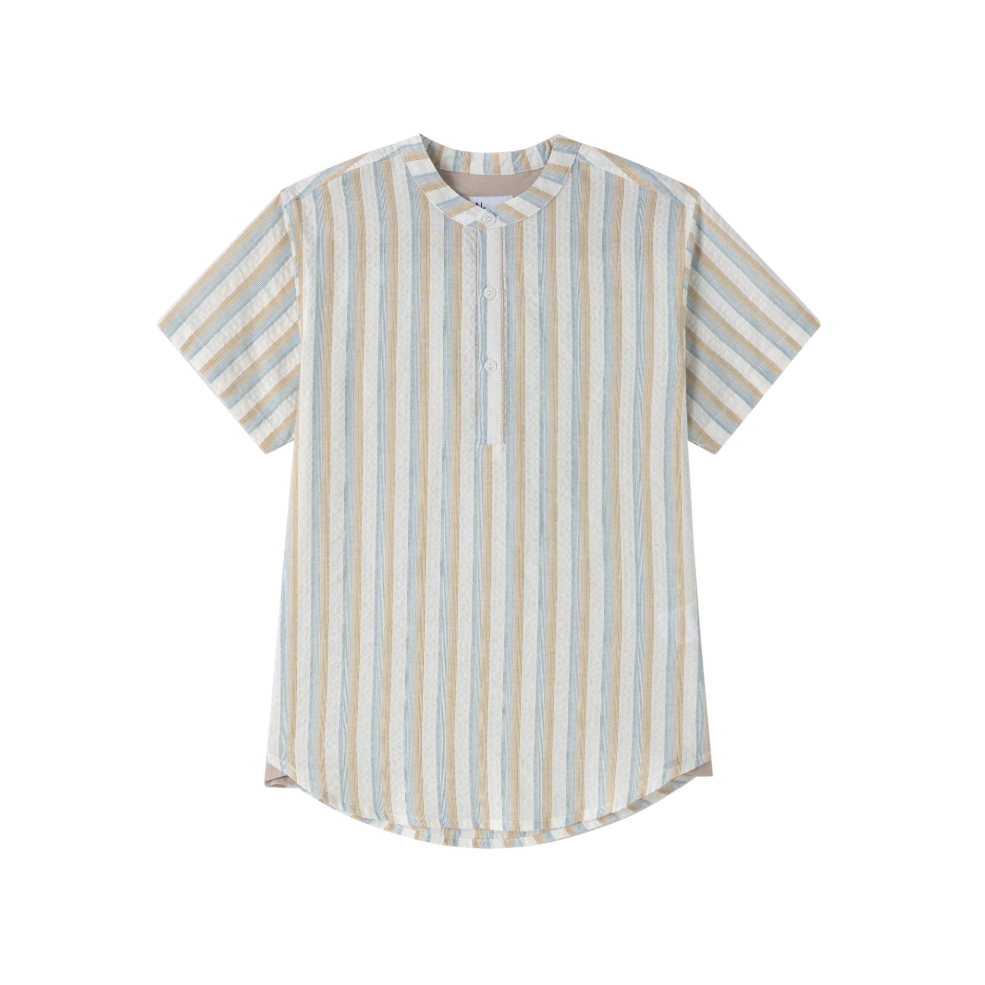 Una camisa con estilo clásico y aire moderno para los pequeños más elegantes. De manga corta y con cuello mao, esta prenda en rayas camel aporta un toque sofisticado y fresco, ideal para los días cálidos. Su diseño versátil la hace perfecta para ocasiones especiales, eventos familiares o incluso para un look arreglado y cómodo en el día a día. Fácil de combinar con bermudas o pantalones de lino, es una opción encantadora para lucir con estilo y naturalidad.