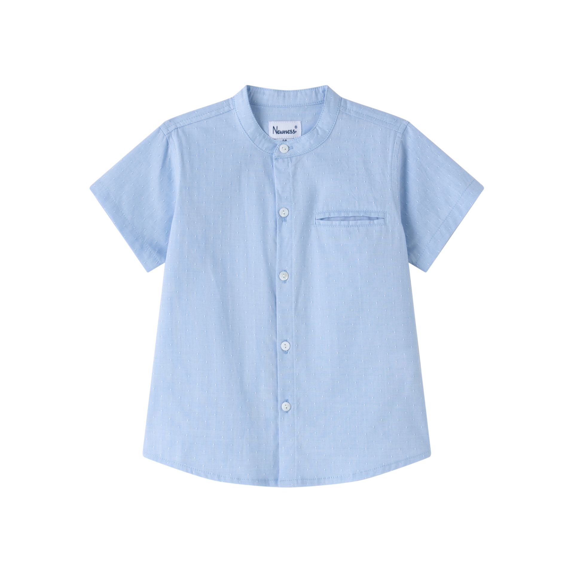 Una camisa elegante con un toque moderno y fresco para los peques con estilo. De manga corta y con cuello mao, esta prenda en color azul con delicados puntos blancos es perfecta para ocasiones especiales, celebraciones familiares o para lucir impecable en días calurosos. Su diseño cómodo y sofisticado combina fácilmente con bermudas o pantalones de vestir, logrando un look encantador sin perder la comodidad. Ideal para brillar en cada momento especial.