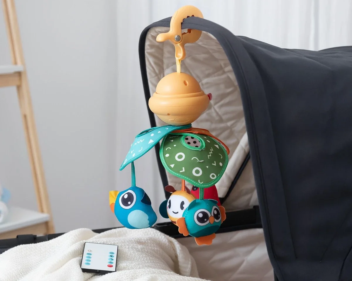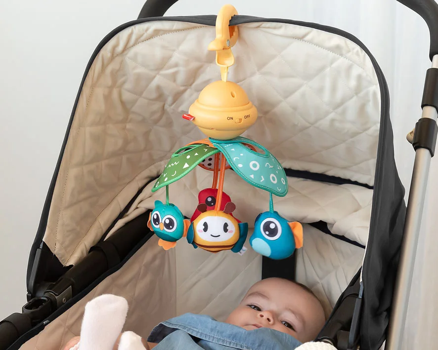 - Este móvil colgante para tu peque es perfecto para que se entretenga mientras pasea por el parque. Lo tiene todo, desde una flor muy grande se despliegan figuras colgantes para que el bebé los alcance y juegue con ellos.