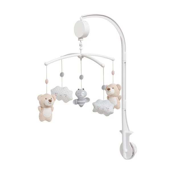 Carrusel musical, las suaves figuras giran suavemente al ritmo de la melodía y ayudará a tu bebe a dormir plácidamente. Perfecto para la estimulación visual y despertar su sentido del descubrimiento. Los peluchitos se pueden separar y utilizar independientemente del carrusel para que el bebé pueda jugar con ellos en todo momento. La caja musical tiene un sistema que permite parar la melodía en cualquier momento. Fácil de montar (manual de uso incluido). Los peluchitos se pueden lavar a 30º