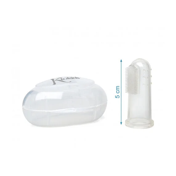 - El primer cepillo de dientes de tu bebé. Hecho 100% en silicona, presenta diferentes terminaciones que podemos utilizar tanto para la higiene bucal y dental como para masajear las encías del pequeño durante la dentición.