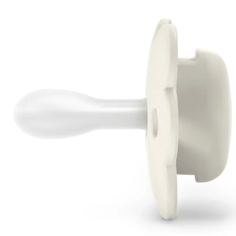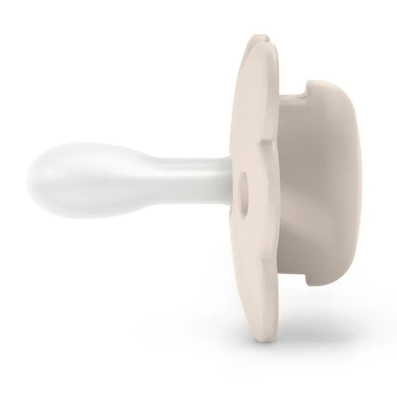 - Su tetina fisiológica de silicona tiene una forma plana y simétrica que se adapta perfectamente a la boca del bebé, garantizando que siempre esté correctamente colocada y ejerciendo la mínima presión sobre el paladar.