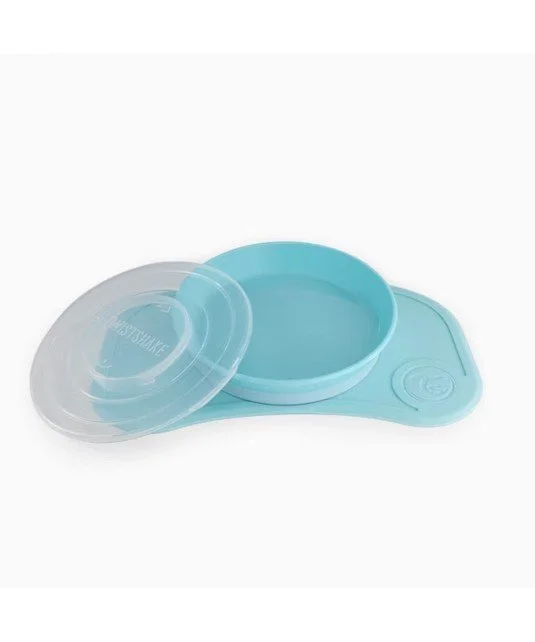 Todos los modelos de platos de Twistshake son compatibles con el mantel Click-mat mini de Twistshake: plato 6+M, plato dividido 6+M y plato hondo 6+M. Con el plato viene una tapa que convierte el plato en un práctico recipiente para guardar comida sobrante o llevar comida al pícnic.