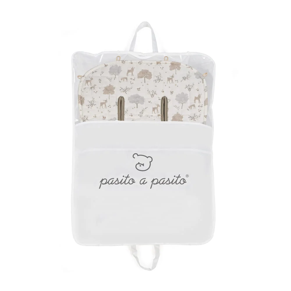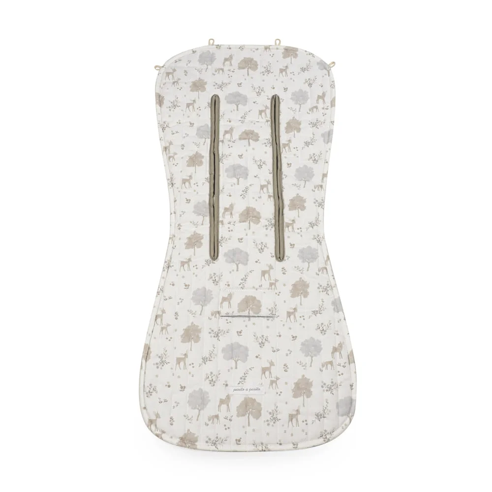 - La colchoneta para silla Nara de Pasito a pasito en tejido de algodón estampado es la cobertura ideal que se adapta a la mayoría de las sillas de paseo y darle mayor comodidad a tu hijo durante sus paseos en días calurosos.