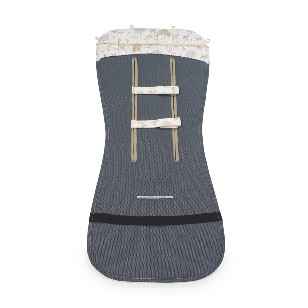 - Este modelo está pensada para adaptarla a la mayoría de las sillitas de paseo ya que dispone de varias aperturas (ojales) y ajustes para cubrir la superficie donde se recuesta el bebé.