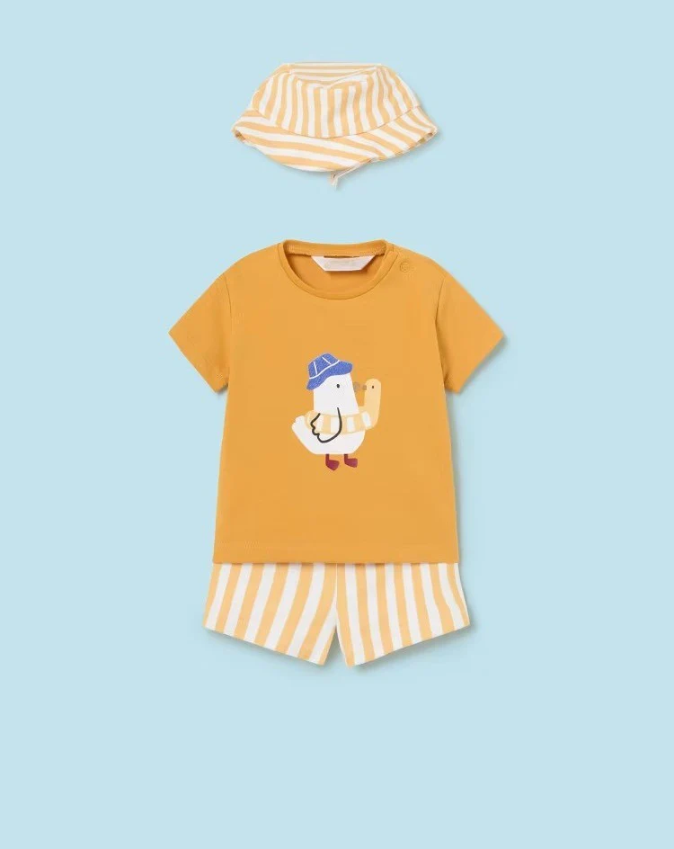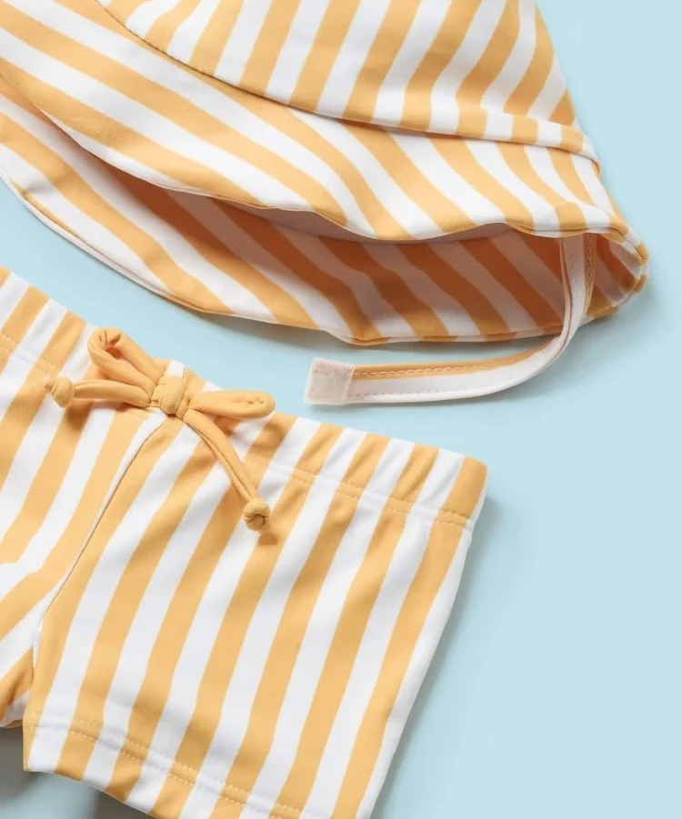 Divertido conjunto de baño para recién nacido de tres piezas piezas a juego. Disfrutará de los días de verano con un look fresco y relajado.