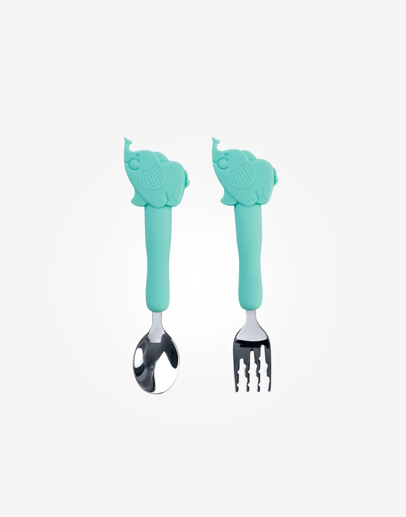 - Manejar los cubiertos con soltura no es una tarea sencilla, pero este par de elefantes tiene una misión: ayudar a tu peque a conseguirlo.