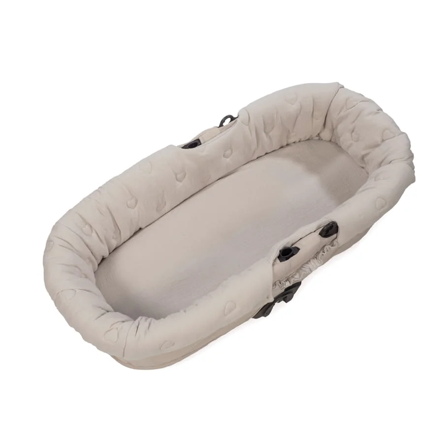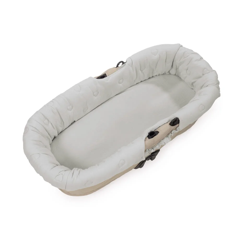 - El cubre cuco con vuelta y sábana bajera ajustable Sintra con corazones bordadoses el complemento perfecto para aportar suavidad y elegancia al capazo de tu bebé.