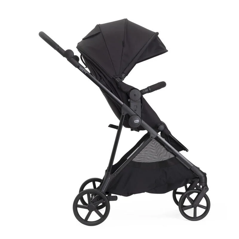 TU PRIMER ALIADO: Seety es ideal desde los primeros días hasta los 22kg. El asiento amplio y acolchado, el respaldo totalmente reclinable en infinitas posiciones y el reposapiés ajustable, hacen que Seety sea increíblemente cómoda para el bebé. El asiento es fácilmente reversible, desde la vista de los padres, ideal durante los primeros 6 meses de vida, hasta la vista de la calle, para que el bebé pueda observar libremente el mundo que lo rodea. Seety garantiza paseos tranquilos y cómodos gracias a la gran capota que protege al bebé de los rayos UV50+ y de la lluvia (tratamiento WTR).