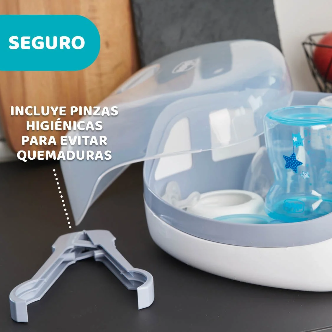 El esterilizador microondas de Chicco para microondas se adapta a la mayoría de los microondas gracias a su tamaño reducido