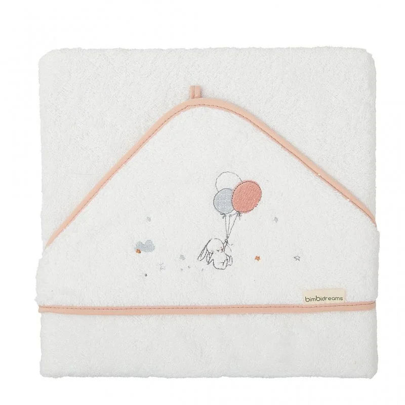 La maxicapa de baño Jolie de Bimbidreams está elaborado en rizo 100% algodón, es muy absorvente y tiene capucha incorporada.