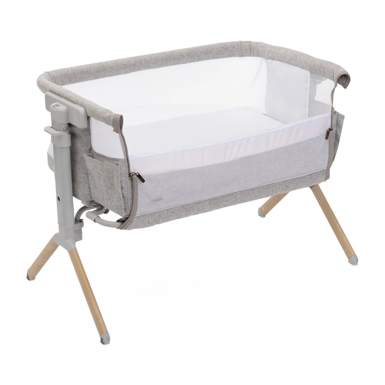 - La minicuna puede ajustarse en 11 niveles de altura para adaptarse a diferentes camas. Un innovador sistema de instalación por deslizamiento lateral permite instalar la cuna incluso en cama con cajones.