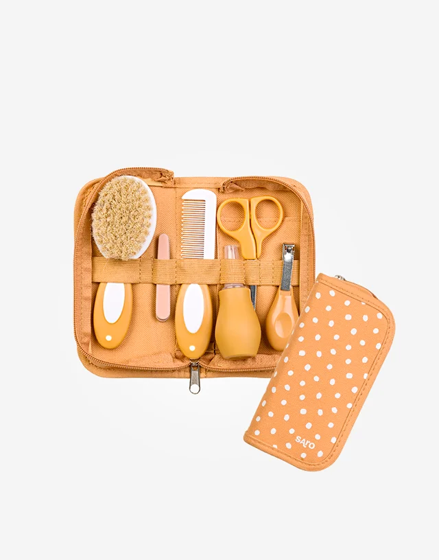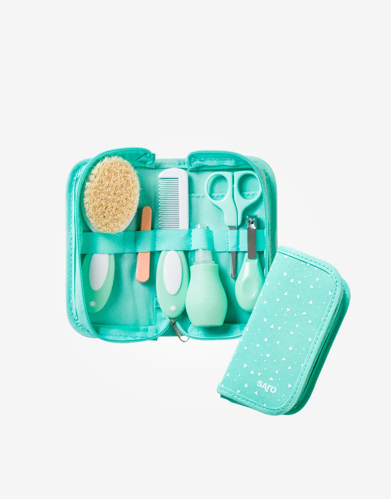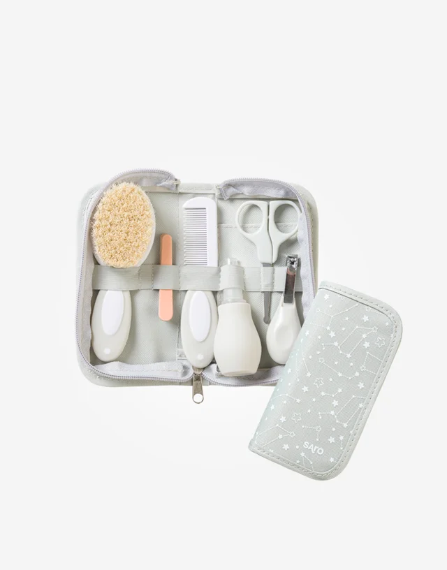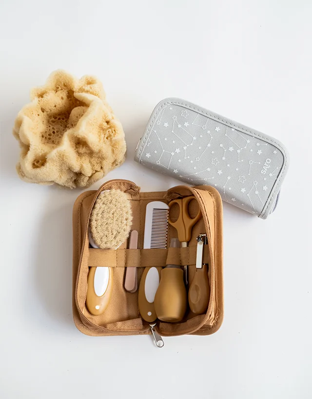Completo neceser con todo lo necesario para el aseo del bebé en un práctico estuche con cremallera. Perfecto para viajar, ya que contiene todos los complemento de higiene necesarios.
