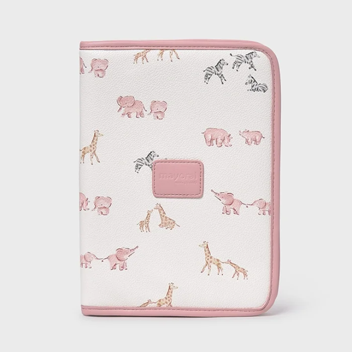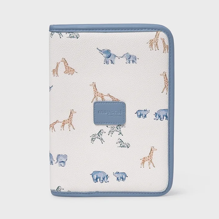 Estiloso portadocumentos de bebé de cuidado diseño, cuenta con compartimentos interiores para una mejor organización.