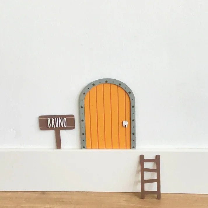 • Así que…, ¿a quién se le ha caído un diente? Con esta puerta realizada con madera de bosque sostenible, el Ratoncito Pérez va a poder visitar al niño o niña. La puerta viene con un cartel adhesivo en el que pone ‘Sr. Pérez’, la colocación del cual es opcional.