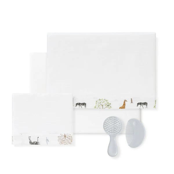 Juego de Sabanas para Cuna Modelo Serengueti + Kit de peine con cepillo de la marca Don Algodon