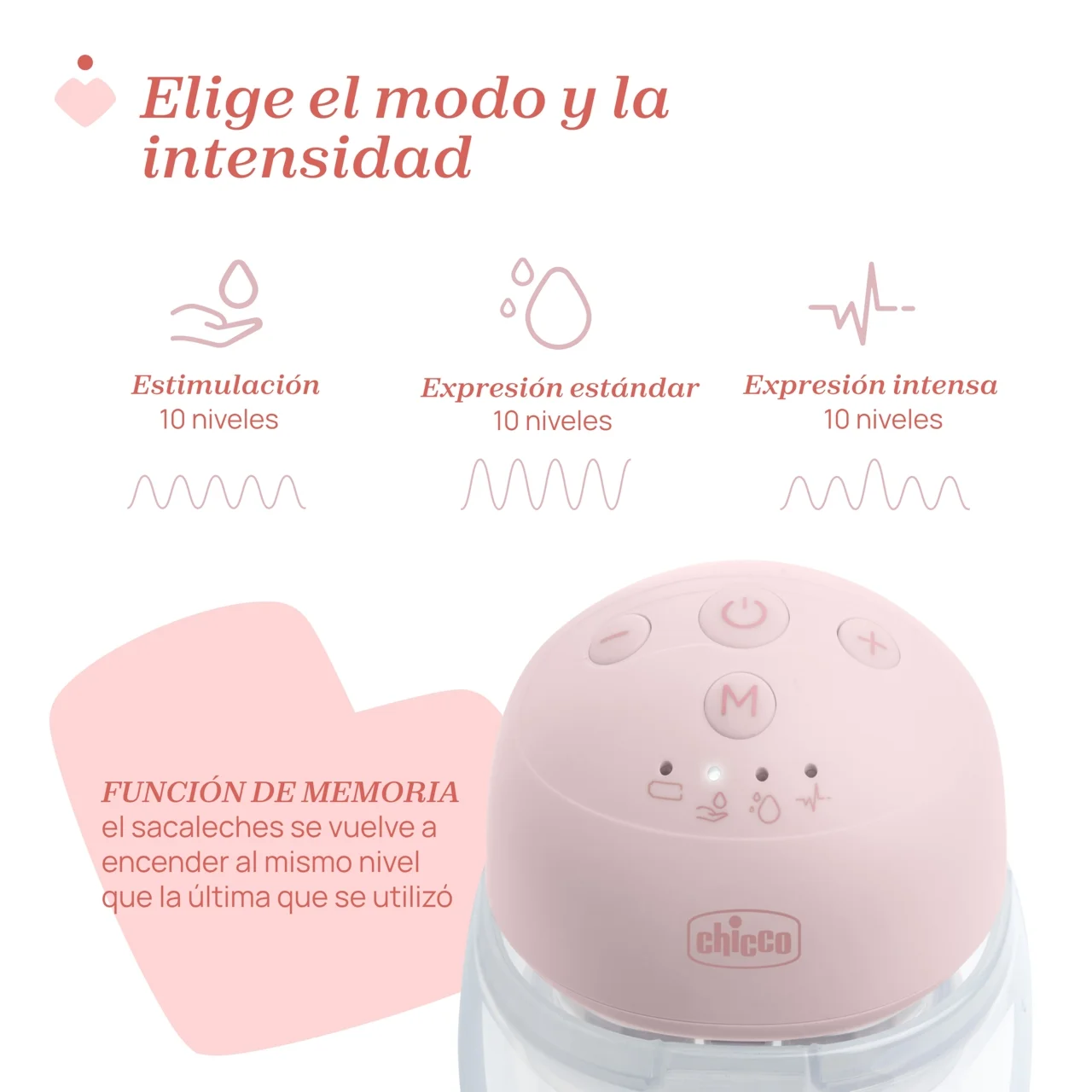 - El extractor de leche portátil ofrece 3 modos: estimulación, extracción estándar y extracción intensa. 10 niveles de intensidad para cada modo te permiten personalizar mejor cada uso.