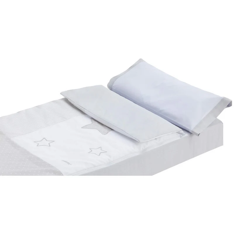 Saco nórdico desenfundable con el que tendrás tu cuna vestida todo el año, en invierno lo puedes utilizar con el relleno nórdico para que tu bebé esté calentito y a temperatura constante toda la noche, en verano le sacas el relleno de forma fácil y lo utilizas como colcha. Si tu bebé se mueve mucho por las noches y acaba destapado, te recomendamos usar este saco nórdico, evitarás posibles pérdidas de calor. Cuando acuestes a tu bebé en la cuna tendrás la tranquilidad de que no se destapará en toda la noche. Incluye: saco nórdico desenfundable, bajera con cremallera, funda de almohada y relleno nórdico. Consejos de cuidado: Lavar a máquina temperatura máxima 40º C. No usar lejía. Temperatura máxima de planchado 150º. No lavar en seco. Se puede usar secadora a baja temperatura. Colores oscuros lavar por separado.