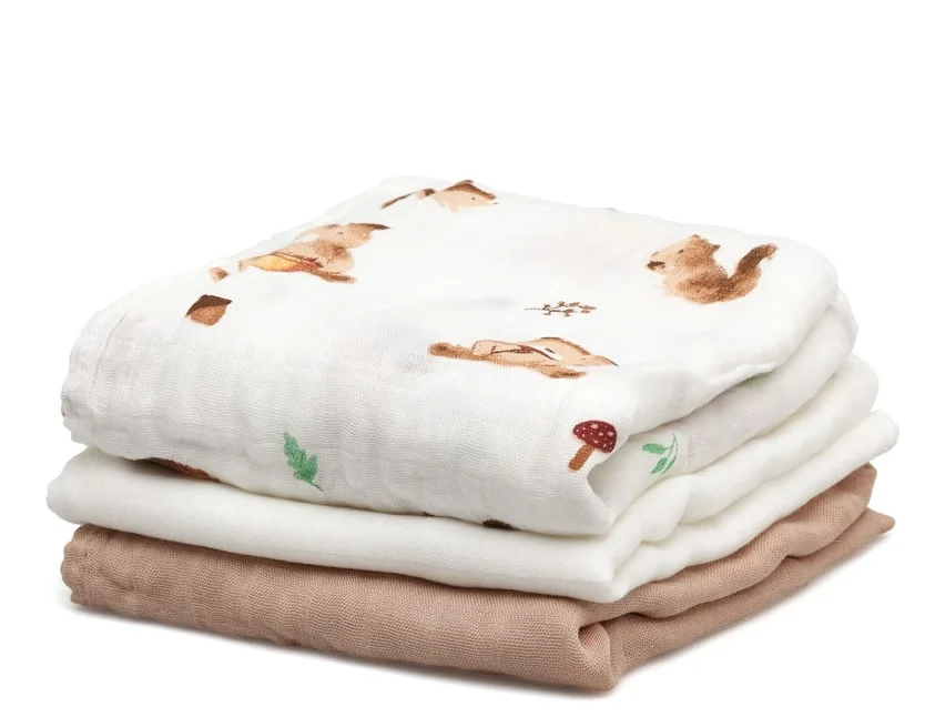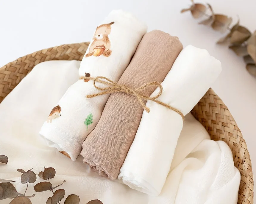 En concreto, para la fabricación de nuestras muselinas utilizamos una mezcla de 70% de bambú y 30% de algodón para conseguir numerosos beneficios de la conjunción de estos materiales: