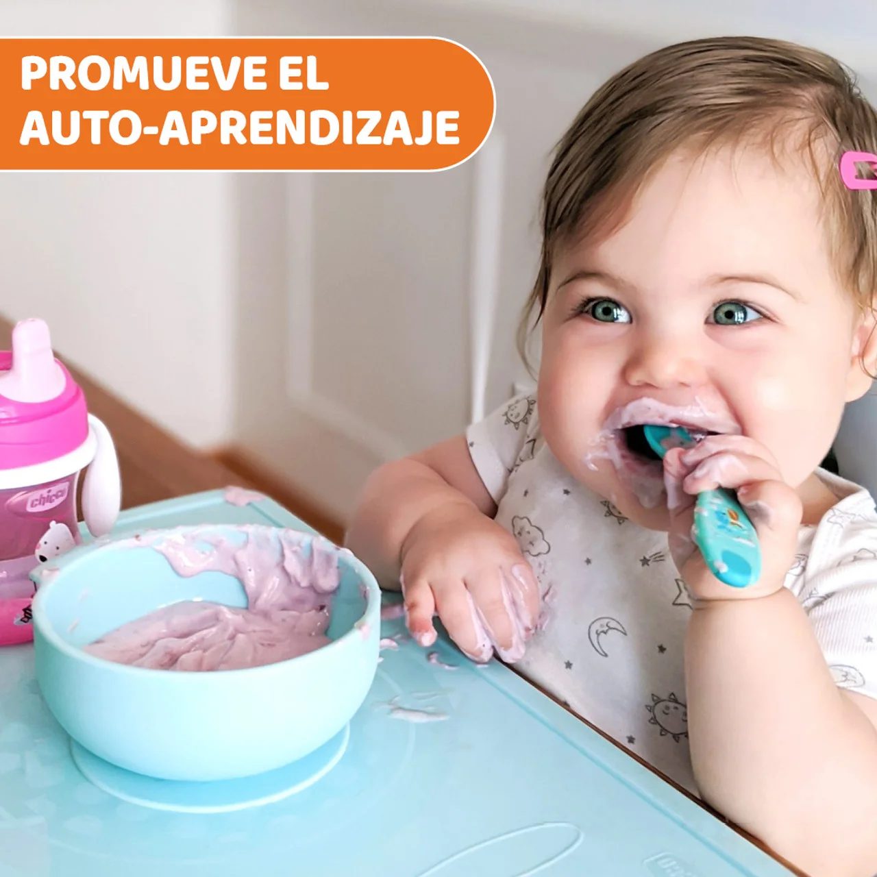 - VAJILLA SILICONA BEBÉ: Práctico conjunto de plato, cuchara y babero desarrollado para las primeras comidas del bebé y fomentar el baby-led weaning a partir de los 6 meses.