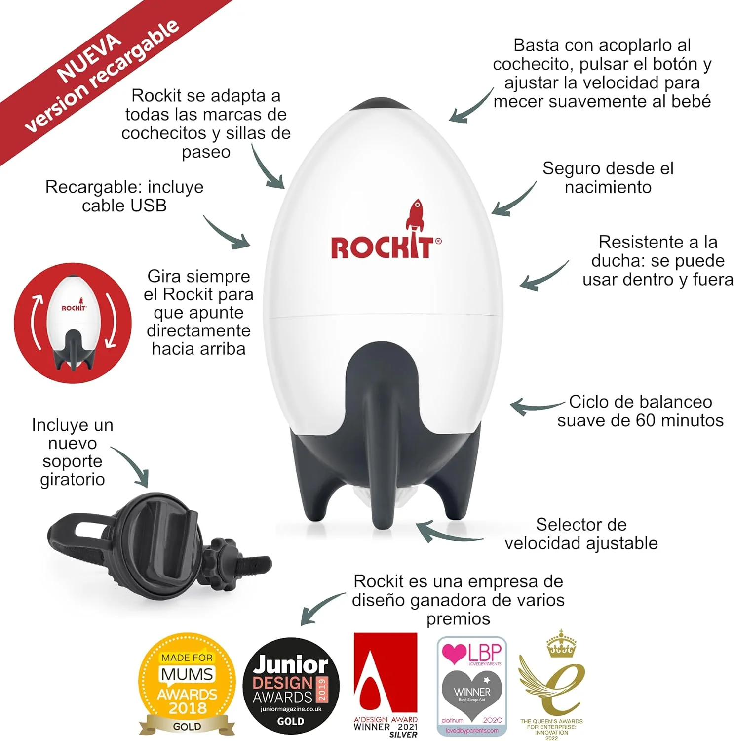 - Mantiene a tu bebé dormido sobre la marcha: con un suave movimiento de balanceo, la mecedora Rockit ayuda a tu bebé a dormir en su cochecito para que tengas las manos libres para empaquetar tus compras, disfrutar de un merecido descanso para tomar café o terminarte la comida antes de que se enfríe.