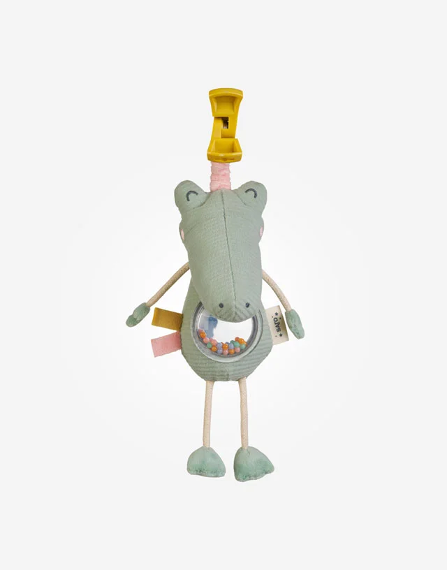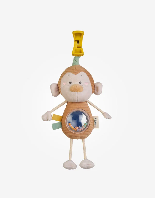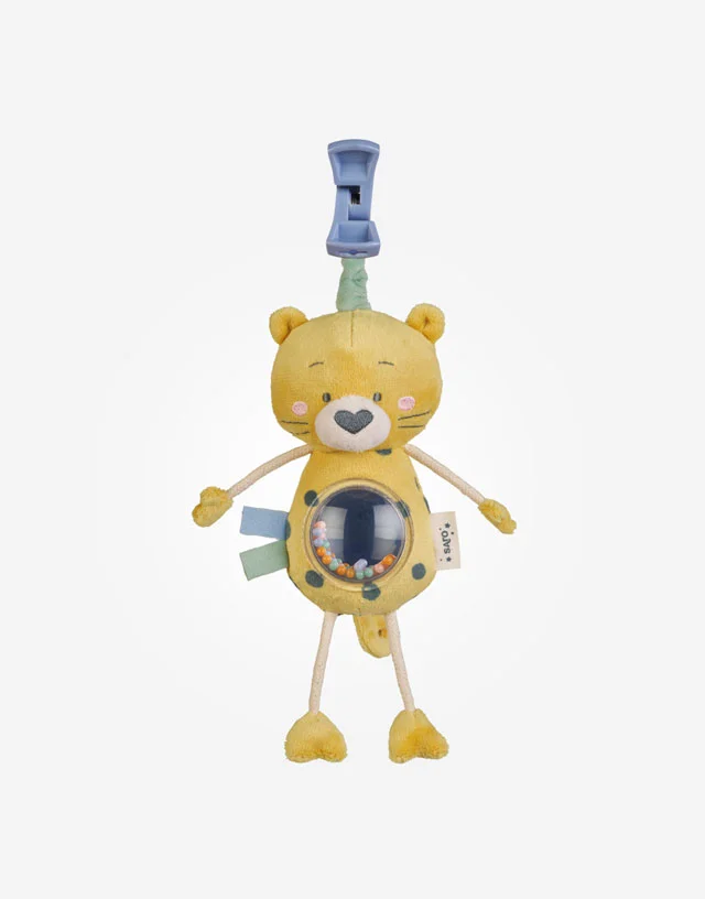 Los paseos serán más divertidos gracias a este suave animalito con sonajero.