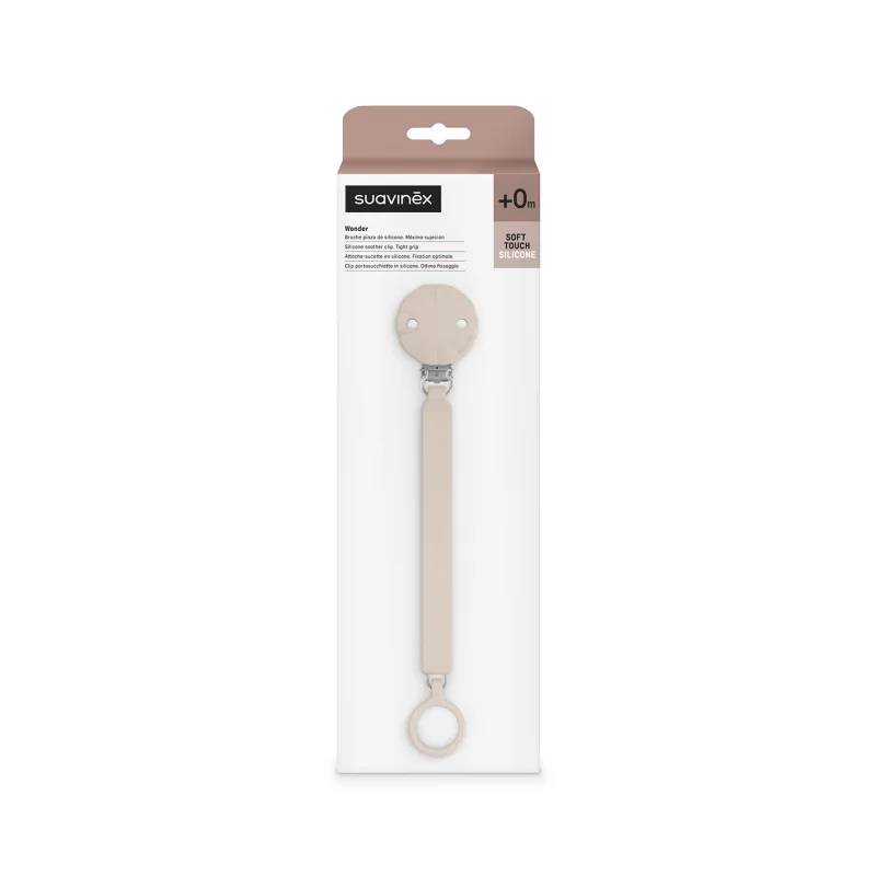 El nuevo sujetachupetes Wonder de Suavinex sujeta el chupete a la ropita del bebé evitando que se caiga al suelo y se ensucie o se pierda.