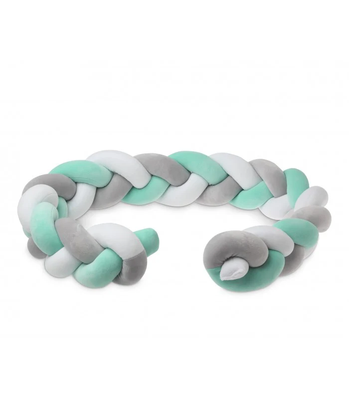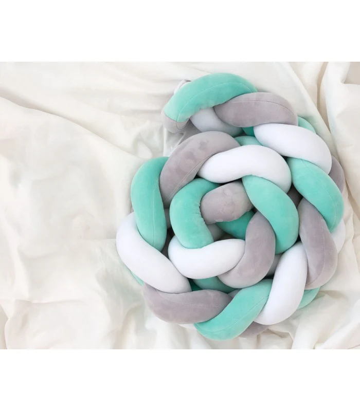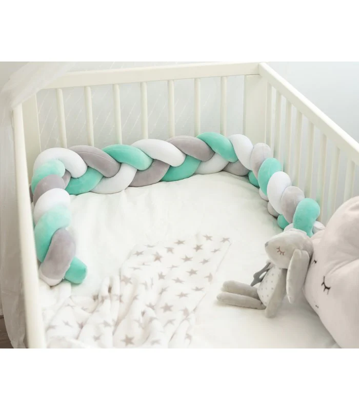 Este protector acolchado con forma de trenza es ideal para bordear la cuna a modo de chichonera y evitar así que el bebé pueda golpear su cabecita con paredes o barrotes. También podemos utilizar más adelante en camitas o para delimitar zonas de juego.