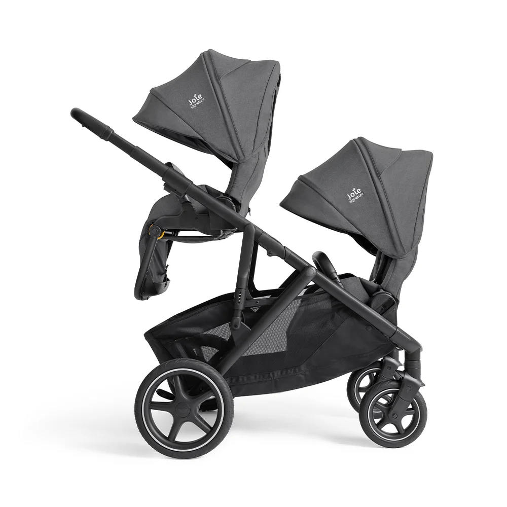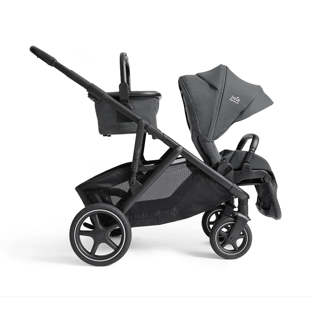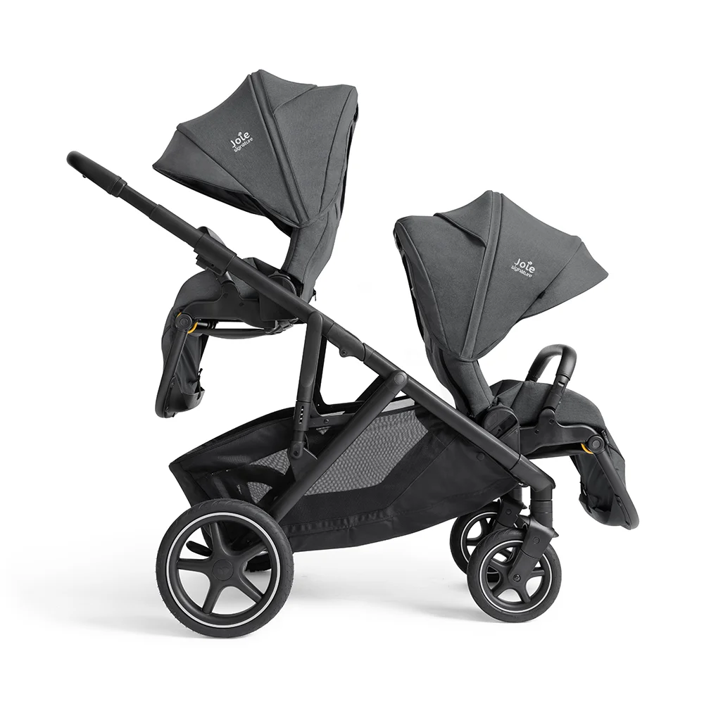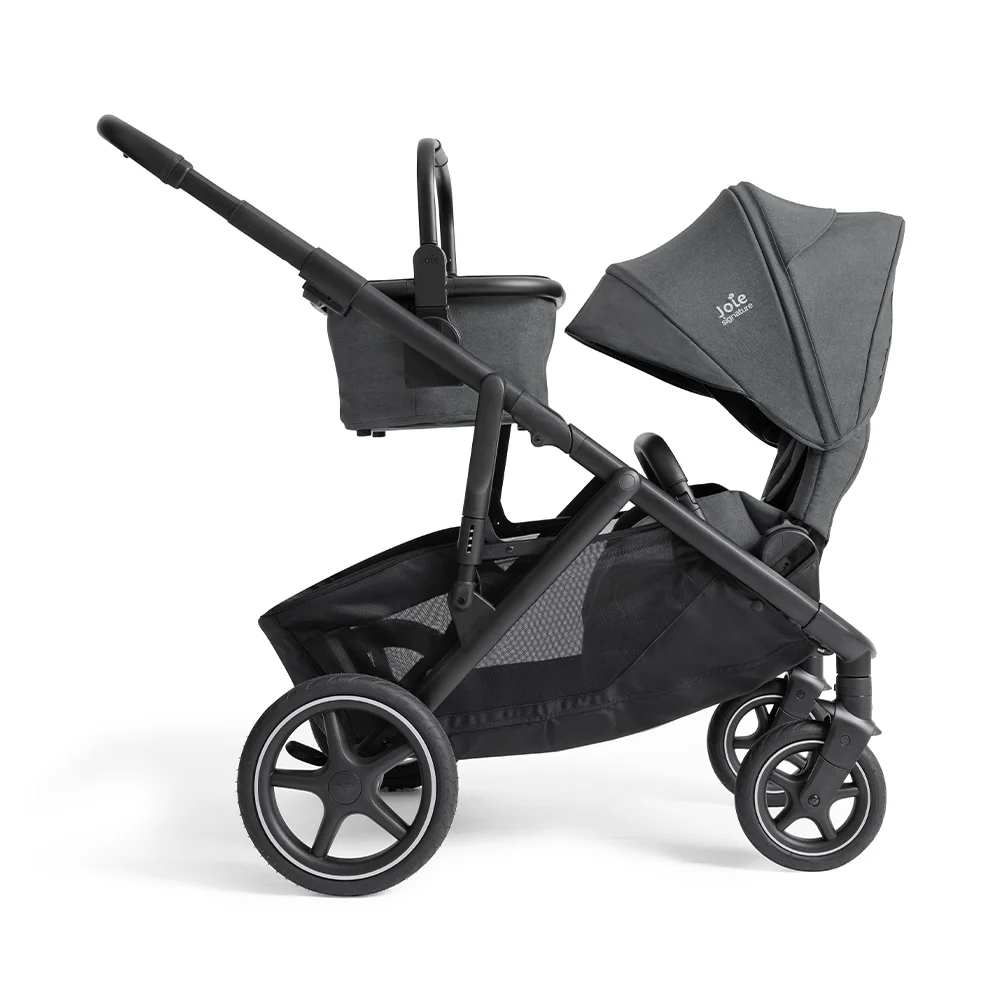 Diseñado para familias que desean más flexibilidad, este cochecito se ajusta fácilmente de individual a doble y le permite conectar múltiples capazos y portabebés para más de 20 modos de uso diferentes.